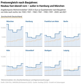 - Preisvergleich nach Baujahren: Neubau fast überall vorn – außer in Hamburg und München