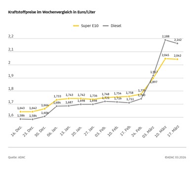 - Kraftstoffpreise leicht rückläufig, aber weiter auf hohem Niveau / Dieselpreis bei 2,16 Euro, Super E10 kostet rund 2,04 Euro / ADAC befürwortet Energiesteuersenkung als Maßnahme gegen hohe Belastung